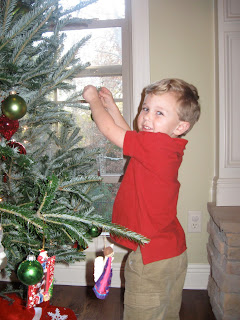 I will post pictures of the finished tree later. Christmas trees are so difficult to photograph. They never look as beautiful in pictures as you think they are! Our decorations around here are minimal this year because Momma doesn't want to have to put it all up before the baby comes! But I think we have enough for Tucker to still think it's wonderful.